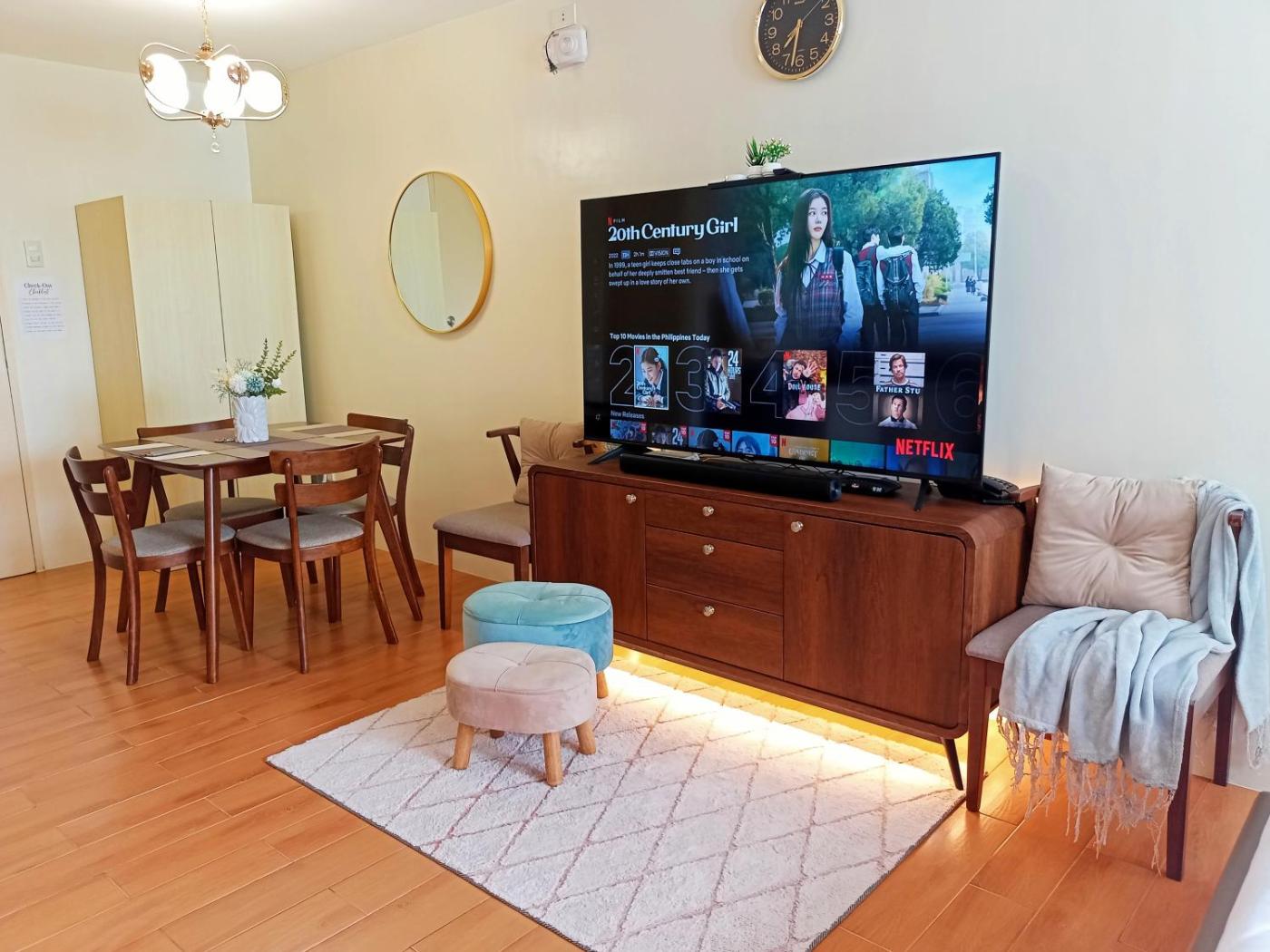Spacious 36sqm Studio with 65" TV Netflix Karaoke and Pool Access Near Airport and Samal Ferry