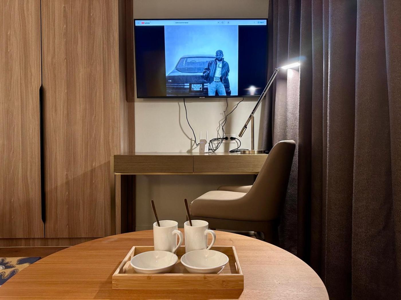 Deluxe King Suite. The air-conditioned suite has 1 bedroom and 1 bathroom with a walk-in shower and a bidet. In the fully equipped kitchen, guests will find a stovetop, a refrigerator, kitchenware and a microwave. Boasting an outdoor dining area, this suite also features a tea and coffee maker, executive lounge access and a flat-screen TV with streaming services. The unit has 1 bed.