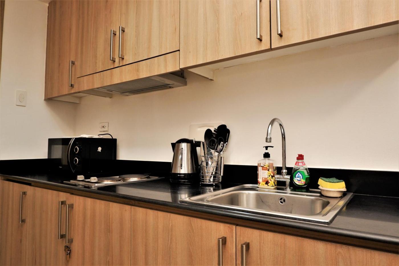 The aparthotel is fitted with a flat-screen TV. The kitchen has a microwave, a fridge and a stovetop and there is a private bathroom with slippers and a hair dryer.