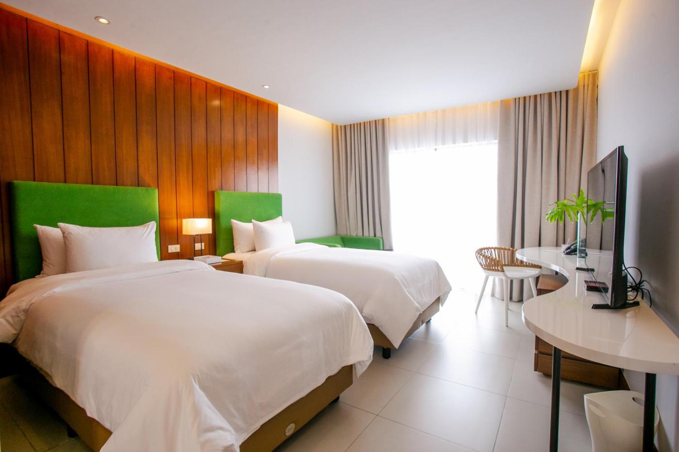 Premier Deluxe Room - Twin. The spacious double room features air conditioning, a seating area, a terrace with city views as well as a private bathroom boasting a shower. The unit has 2 beds. ;
